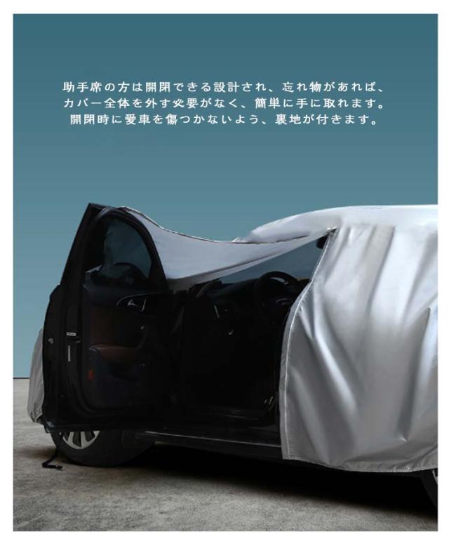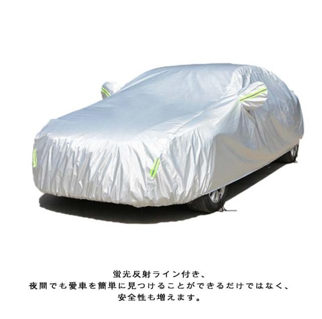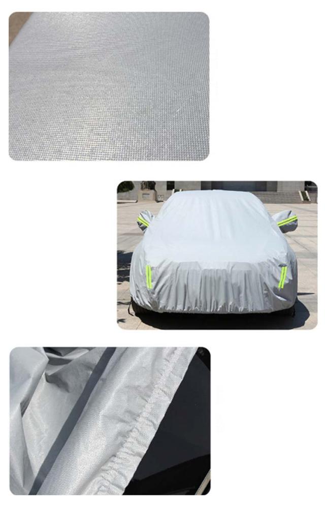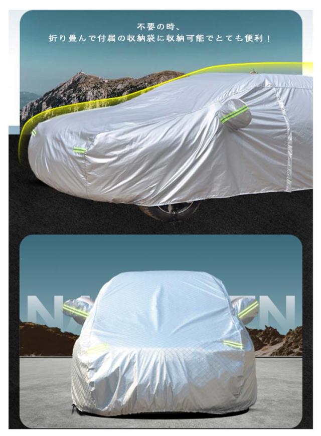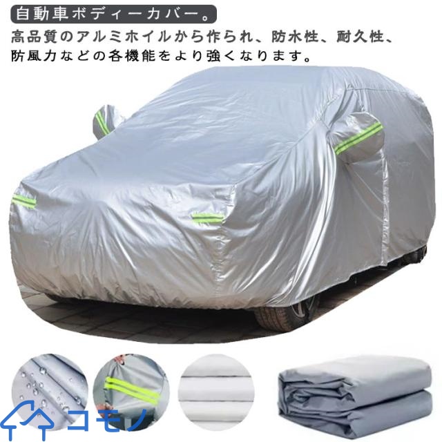 | 自動車ボディーカバー。高品質のアルミホイルから作られ、防水性、耐久性、防風力などの各機能をより強くなります。 柔らかくてカーボディ全体を優しく包み込み、カバーを外す時にご愛車を守ります。水、雪、紫外線への耐性も高めます。 蛍光反射ライン付き、夜間でも愛車を簡単に見つけることができるだけではなく、安全性も増えます。 助手席の方は開閉できる設計され、忘れ物があれば、カバー全体を外す必要がなく、簡単に手に取れます。開閉時に愛車を傷つかないよう、裏地が付きます。 不要の時、折り畳んで付属の収納袋に収納可能でとても便利! | |