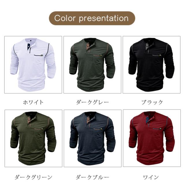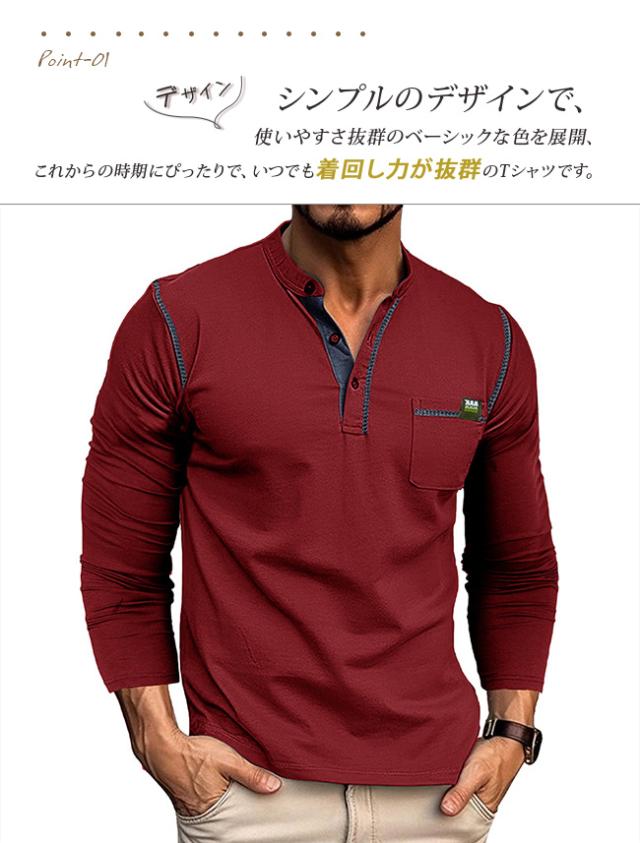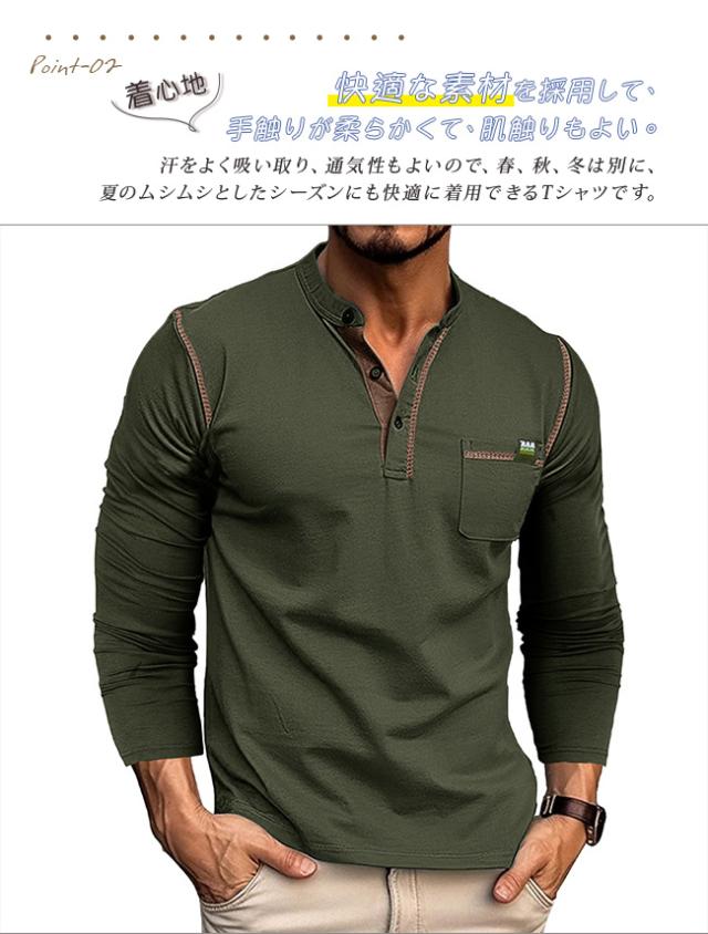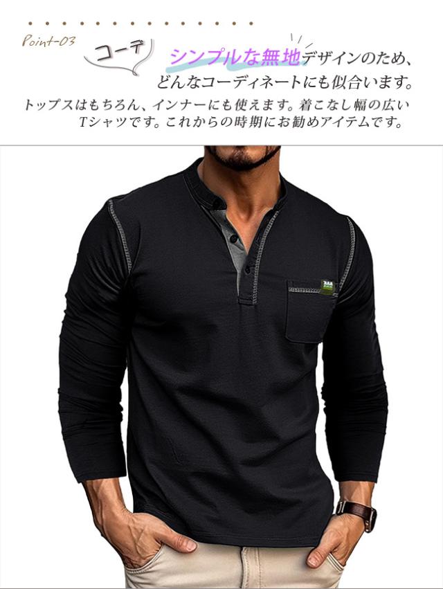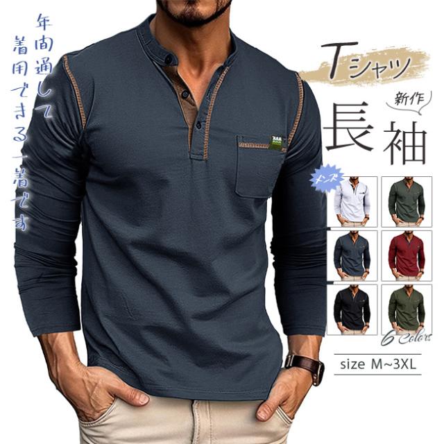tシャツ メンズ 長袖 ヘンリーネック 無地 カットソー 長袖 トップス ゆったり カジュアル 長袖Tシャツ クルーネック 春服 薄手 Vネック おしゃれ 大きいサイズ 春 秋 冬