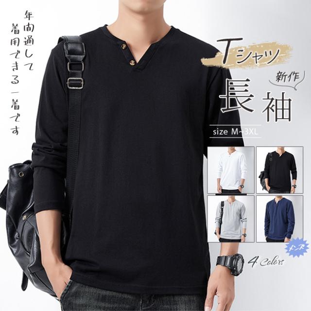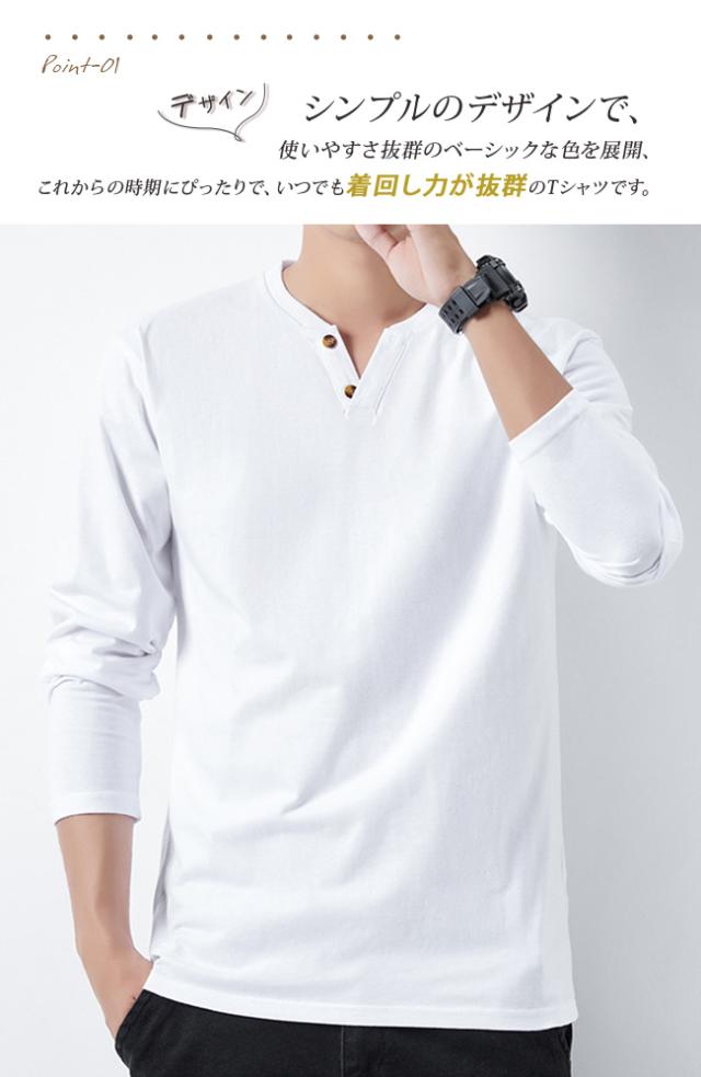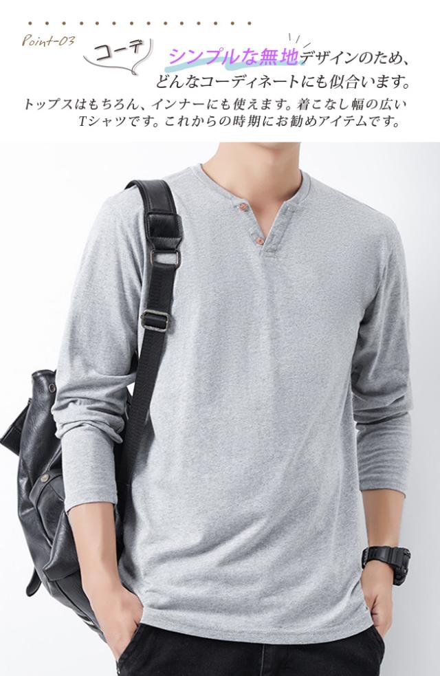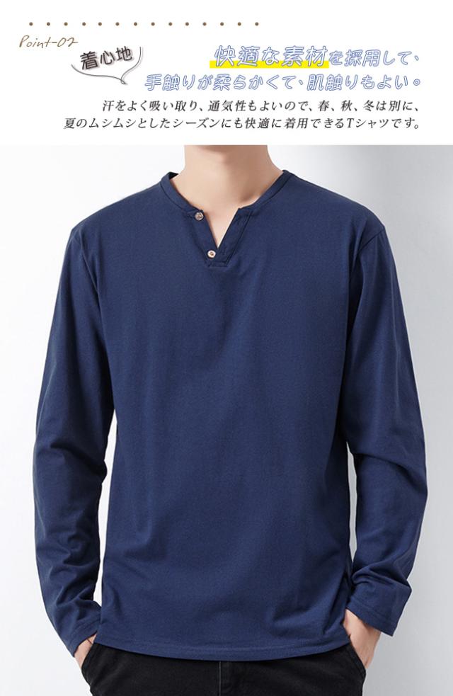 tシャツ メンズ 長袖 綿100% ヘンリーネック 無地 カジュアル おしゃれ インナーシャツ ロングtシャツ メンズ 肌着 服 春 夏 秋 冬
