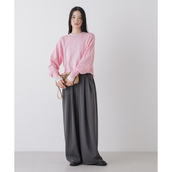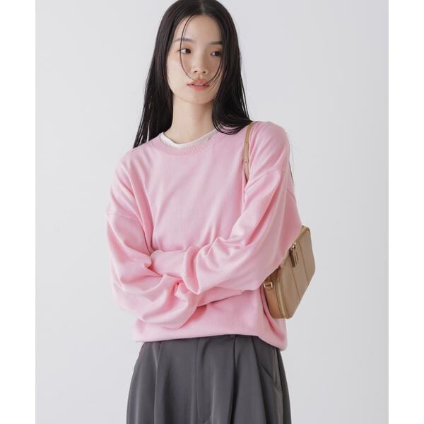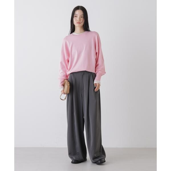 洗濯機洗可バンブーレーヨンニット ワイドクルーネックプルオーバー