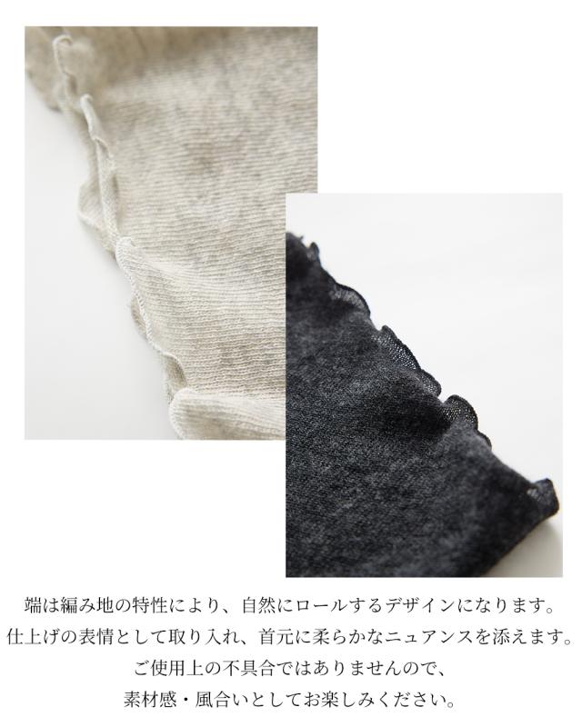 立体的に編まれているため縫い目がほとんどなく、首まわりにありがちなチクチク感やごろつきが出にくいのが特徴。