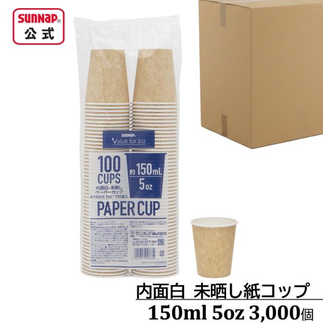 ケース売り 内面白 みざらし紙コップ 150ml 5oz 3,000個【飲料 普段使い 使い捨て 未晒 箱売り 業務用】