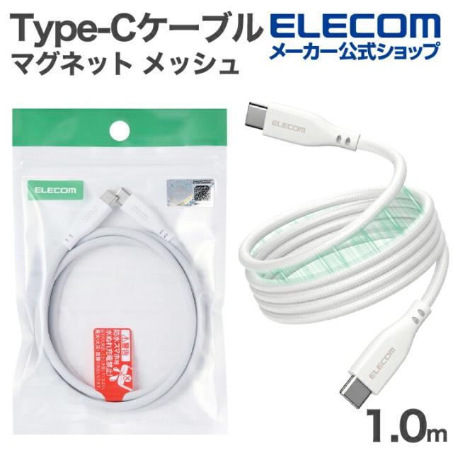 エレコム USB Type-C まとまるマグネットケーブル メッシュ Type-Cケーブル USB Power Delivery対応 最大60W 1.0m ホワイト ┃MPA-CCECMG10WH