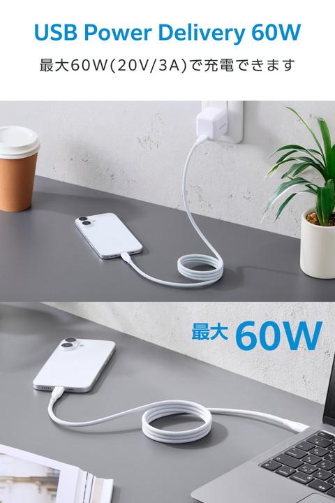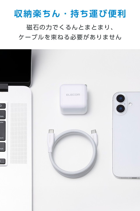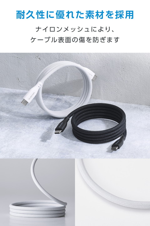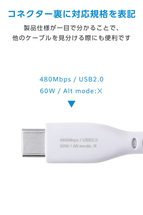 メッシュ×磁石の力で、くるんとまとまり小さく収納!持ち運びに便利なUSB Type-C(TM)(USB2.0)ケーブルです。鉄製の机や棚に吸着し、配線を自在にアレンジできます。耐久性に優れたナイロンメッシュを採用。USB Power Delivery最大60Wの充電に対応し、スマートフォンやタブレットなどを充電できます。![]() ■磁石の力でくっつき、巻くだけでくるんとまとまるUSB Type-C(TM)ケーブルです。 ■磁石の力でくるんとまとまり、持ち運びに便利です。ケーブルを束ねたり、バンドで留めたりしなくても、簡単にまとめて収納できます。 ■設置環境や用途によってお好みのサイズになるよう、ケーブルの巻き半径は自由に調整することが可能です。 ■ケーブルがスチール面に吸着するため、デスクや棚などに取り付けて、デスク周りをすっきりさせることができ、お好みの配線も可能です。 ■※磁石の特性上、お好みの配線ができない場合があります。また机や棚などにくっつけた状態で製品を無理に引っ張ったり、ひねったりしないでください。 ■外皮には、耐久性に優れたナイロンメッシュを採用し、ケーブル表面の傷を防止します。 ■USB Power Deliveryによる最大60W(20V/3A)の充電に対応しているケーブルです。 ■※USB Power Deliveryをご利用になる場合は、接続する機器がUSB Power Deliveryに対応している必要があります。 ■※60W以上のUSB Power Delivery対応充電器および端末に接続した場合、充電は可能ですが出力は最大60Wに制限されます。 ■※ご使用になる機器の性能によって、供給される電力値が異なります。 ■特許権者(発明者)より実施許諾を受けた正規ライセンス品で、特許認定ラベル付きです。(対象特許:日本特許第7511950号) ■※特許認定ラベルは特許権者が発行する真正品識別用ラベルの呼称であり、公的機関による認定を意味するものではありません。 ■最大480Mbps(USB2.0)の高速データ転送が可能です。 ■コネクター部分に製品仕様が一目で分かる印字付きです。 ■難燃性の素材を使用し、安全性を高めています。 ■サビなどに強く信号劣化を抑える金メッキピンを採用しています。 ■※本製品は磁石を使用しています。磁気カード(クレジットカード、キャッシュカードなど)やペースメーカーなど、磁気の影響を受けやすいものに近づけたり、近くで使用したりしないでください。磁力の影響により正常に動作しなくなるおそれがあります。 ■※鉄粉など磁気特性を持つ細かいものが付着すると、取れなくなるおそれがあります。 ■※USB Type-C and USB-C are trademarks of USB Implementers Forum. ■EUの「RoHS指令(電気・電子機器に対する特定有害物質の使用制限)」に適合(10物質)した、環境にやさしい製品です。 ■自社環境認定基準を1つ以上満たし、『THINK ECOLOGY』マークを表示した製品です。 ■環境への負荷軽減のため、輸送効率を高める設計の外装箱を使用した製品です。 ■環境保全に取り組み、製品の包装容器が紙・ダンボール・ポリ袋のみで構成されている製品です。 ■環境保全に取り組み、製品の包装容器におけるプラスチック重量を、社内基準製品より20%以上削減した製品です。 ![]() ■コネクター形状:USB Type-C(TM)プラグ - USB Type-Cプラグ ■対応機種:USB Type-Cポート搭載のスマートフォン、パソコン、AC充電器、モバイルバッテリーなど ■規格:Hi-Speed USB(USB2.0) ■対応転送速度:最大480Mbps ※理論値 ■USB Power Delivery対応:○ ■対応電圧/電流:最大20V/3A(60W) ■DisplayPort Alternate Mode対応:× ■プラグメッキ仕様:金メッキピン ■ツイストペアケーブル(通信線):○ ■ケーブル長:約1m ※コネクター含まず ■ケーブル太さ:約4.4mm ■カラー:ホワイト ■パッケージ形態:袋+ステッカー ■保証期間:1年間 ■環境配慮事項:EU RoHS指令適合、THINK ECOLOGYマーク |