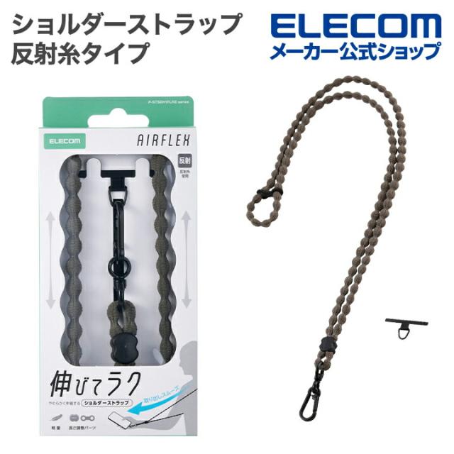 エレコム スマホショルダーストラップ 反射糸タイプ 伸縮 こぶ紐 軽量 ステンレスストラップホールシート付属(1口タイプ×1枚) チャコール ┃P-STSDH1FLREGY