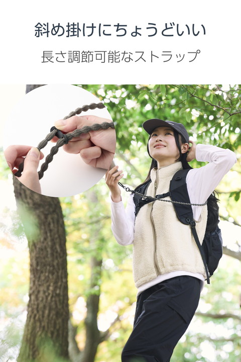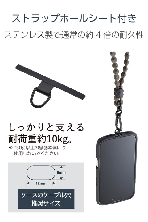 特許取得のこぶ型ひもを使った、柔らかく伸びるAIRFLEXシリーズのショルダーストラップです。肩に掛けたままでも電子決済や改札の通過がスムーズにでき、両手が空くので外出やお出かけも快適。反射糸が光を反射するため、夜間の外出時も安心して使えます。![]() ■特許取得のこぶ型ひもを採用。モコモコの形と伸縮素材が肩への負担をやさしく分散し、しなやかにフィットします。 ■ひもは柔らかく伸縮し、肩に掛けたままでも電子決済や改札の通過がスムーズにできます。 ■独自構造で肌への密着を抑え、いつでもさらっと快適。長時間でも心地よく使えます。 ■軽量設計で、散歩やランニング、アウトドアや旅行など、アクティブなシーンでも軽やかに装着できます。 ■反射糸を使用し、暗い場所では車のライトなどの強い光を反射します。夜間の外出時も安心して使えます。 ■斜め掛けにできるので、両手が空き、普段のお出かけはもちろん、お仕事や旅行などのイベント時にも便利。落下や盗難、紛失防止にも役立ちます。 ■取り外しやすいカラビナ付きで、使わないときはスマートフォンを簡単に取り外せます。 ■ストラップは調節パーツでお好みの長さにできます。 ■ケースにフィットする0.2mmの薄型ストラップホールシートを付属。ケースにストラップホールがなくても、スマートフォンとケースの間に挟むだけで使用できます。 ■ストラップホールシートはステンレス製で、通常製品の約4倍の耐久性があります。 ■ストラップホールシートを挟んだまま充電が可能です。 ■※ケースの種類は、ハイブリッドケース、ソフトケースをご使用ください(ケース背面が硬い素材のものを推奨します)。シリコン製のケースには使用しないでください。 ■※ケーブル穴が大きく開口しているケースでの使用は推奨していません。 ■※耐荷重は約10kgまでです。また、250g以上の機器本体には使用しないでください。 ■自社環境認定基準を1つ以上満たし、『THINK ECOLOGY』マークを表示した製品です。 ■環境への負荷軽減のため、輸送効率を高める設計の外装箱を使用した製品です。 ![]() ■サイズ:ショルダーストラップ:全長約1200mm、ストラップホールシート:幅約45mm×厚み約0.2mm×高さ約23mm ■耐荷重:約10kgまで ※250g以上の機器本体には使用しないでください。 ■セット内容:ショルダーストラップ×1、ストラップホールシート(1口)×1 ■材質:ショルダーストラップ:ナイロン・ラテックス・人工皮革・ウレタン・亜鉛合金・ABS、ストラップホールシート:ステンレス ■カラー:グレー |