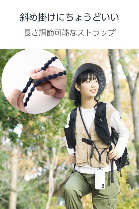 特許取得のこぶ型ひもを使った、柔らかく伸びるAIRFLEXシリーズのショルダーストラップです。肩に掛けたままでも電子決済や改札の通過がスムーズにでき、両手が空くので外出やお出かけも快適。反射糸が光を反射するため、夜間の外出時も安心して使えます。![]() ■特許取得のこぶ型ひもを採用。モコモコの形と伸縮素材が肩への負担をやさしく分散し、しなやかにフィットします。 ■ひもは柔らかく伸縮し、肩に掛けたままでも電子決済や改札の通過がスムーズにできます。 ■独自構造で肌への密着を抑え、いつでもさらっと快適。長時間でも心地よく使えます。 ■軽量設計で、散歩やランニング、アウトドアや旅行など、アクティブなシーンでも軽やかに装着できます。 ■反射糸を使用し、暗い場所では車のライトなどの強い光を反射します。夜間の外出時も安心して使えます。 ■斜め掛けにできるので、両手が空き、普段のお出かけはもちろん、お仕事や旅行などのイベント時にも便利。落下や盗難、紛失防止にも役立ちます。 ■取り外しやすいカラビナ付きで、使わないときはスマートフォンを簡単に取り外せます。 ■ストラップは調節パーツでお好みの長さにできます。 ■ケースにフィットする0.2mmの薄型ストラップホールシートを付属。ケースにストラップホールがなくても、スマートフォンとケースの間に挟むだけで使用できます。 ■ストラップホールシートはステンレス製で、通常製品の約4倍の耐久性があります。 ■ストラップホールシートを挟んだまま充電が可能です。 ■※ケースの種類は、ハイブリッドケース、ソフトケースをご使用ください(ケース背面が硬い素材のものを推奨します)。シリコン製のケースには使用しないでください。 ■※ケーブル穴が大きく開口しているケースでの使用は推奨していません。 ■※耐荷重は約10kgまでです。また、250g以上の機器本体には使用しないでください。 ■自社環境認定基準を1つ以上満たし、『THINK ECOLOGY』マークを表示した製品です。 ■環境への負荷軽減のため、輸送効率を高める設計の外装箱を使用した製品です。 ![]() ■サイズ:ショルダーストラップ:全長約1200mm、ストラップホールシート:幅約45mm×厚み約0.2mm×高さ約23mm ■耐荷重:約10kgまで ※250g以上の機器本体には使用しないでください。 ■セット内容:ショルダーストラップ×1、ストラップホールシート(1口)×1 ■材質:ショルダーストラップ:ナイロン・ラテックス・人工皮革・ウレタン・亜鉛合金・ABS、ストラップホールシート:ステンレス ■カラー:ネイビー |
