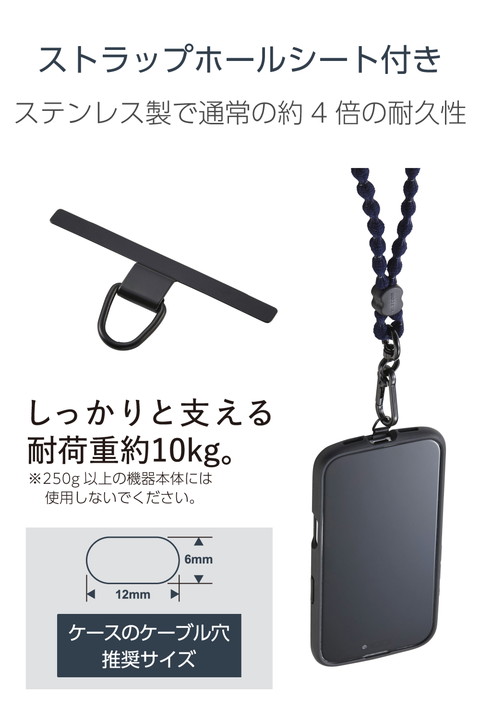 エレコム スマホショルダーストラップ 反射糸タイプ 伸縮 こぶ紐 軽量 ステンレスストラップホールシート付属(1口タイプ×1枚) ネイビー ┃P-STSDH1FLRENV