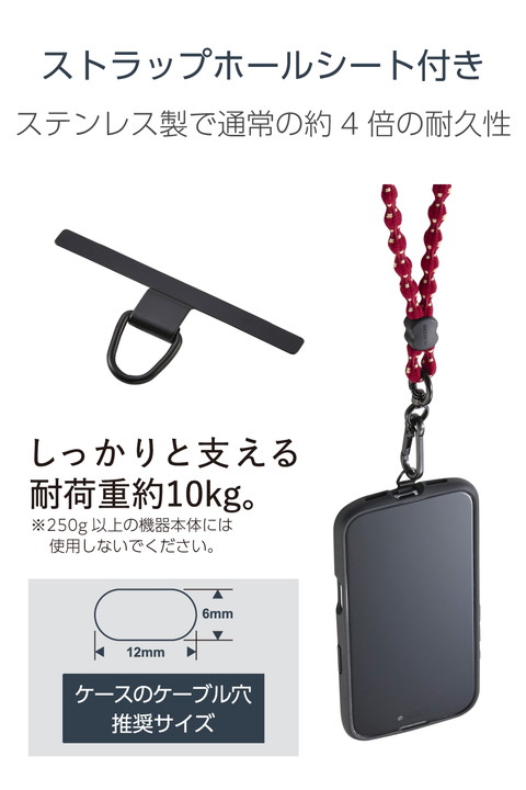 エレコム スマホショルダーストラップ デザイン柄タイプ 伸縮 こぶ紐 軽量 ステンレスストラップホールシート付属(1口タイプ×1枚) ストラップ バーガンディ ┃P-STSDH1FLSTBD