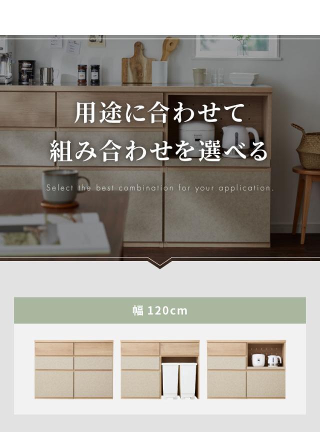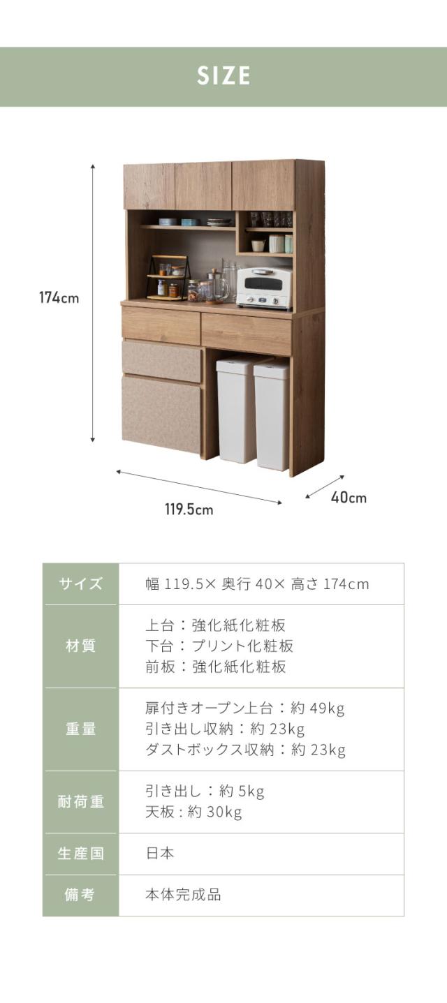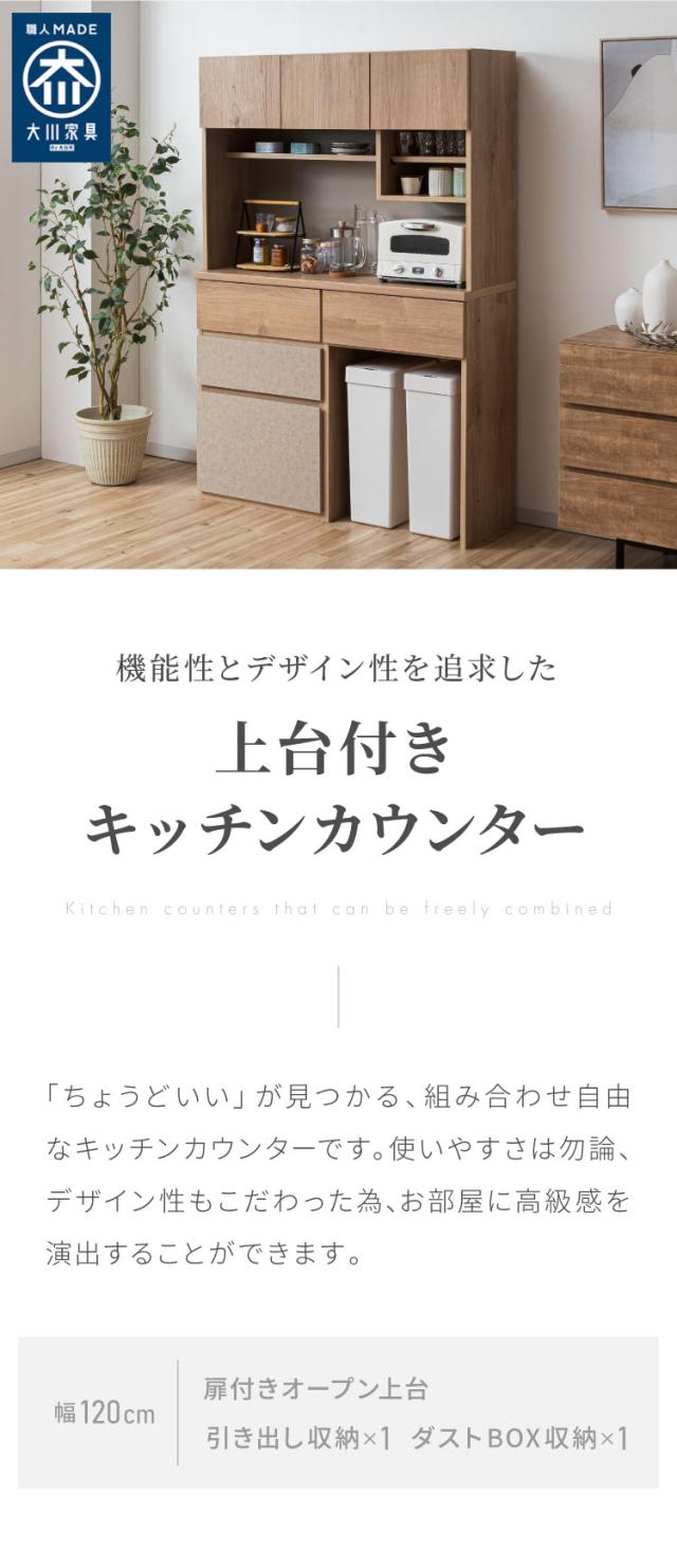食器棚 幅120 ごみ箱収納 完成品 日本製 キッチンカウンター 上台付きキッチンボード キッチン収納 レンジ台 モダン ナチュラル セラミック調 国産 大川家具(代引不可)【送料無料】