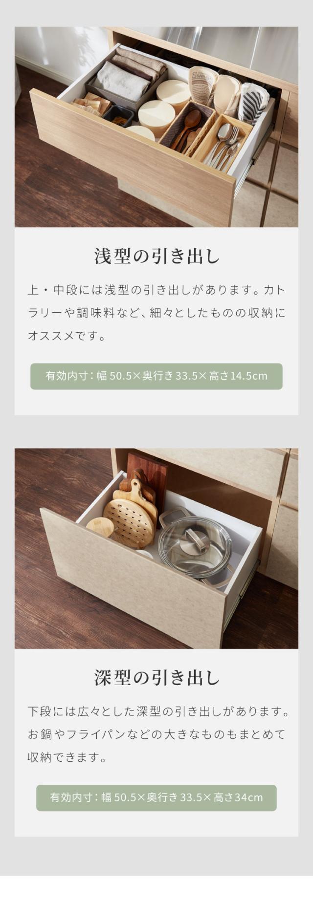 引き出し:幅50.5×奥行33.5×高さ9.5cm(有効高さ14.5cm)