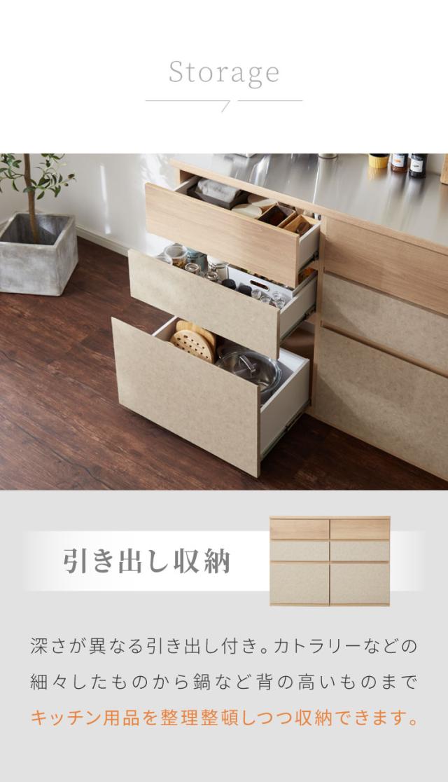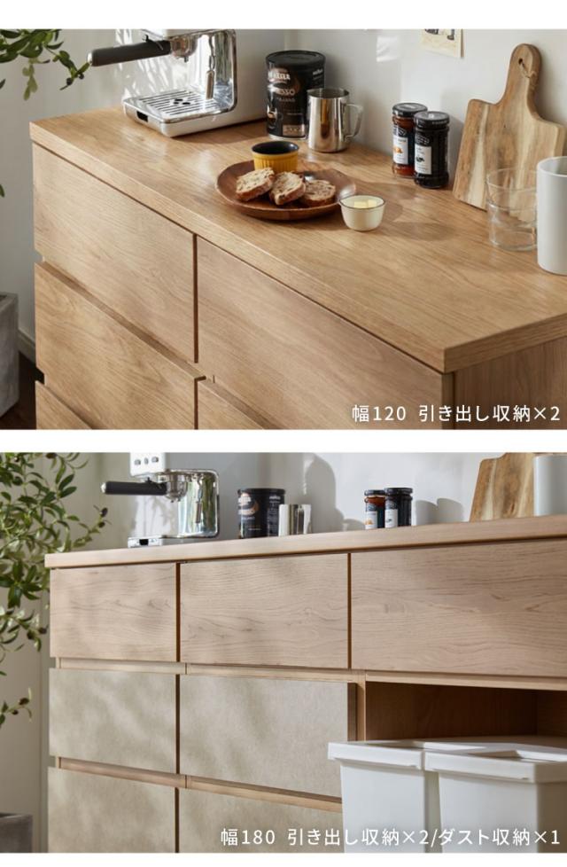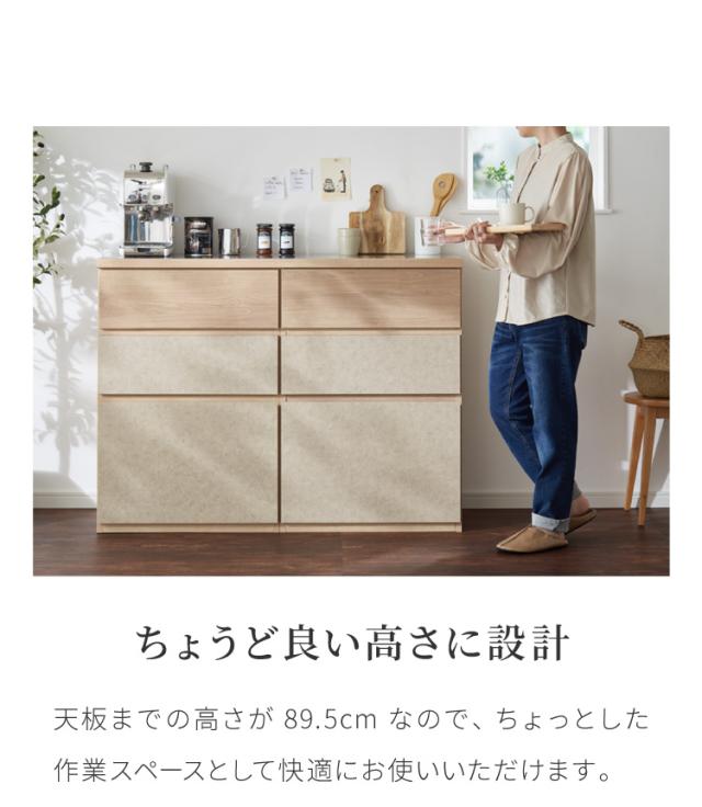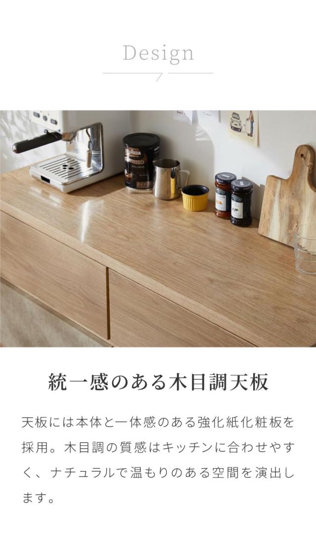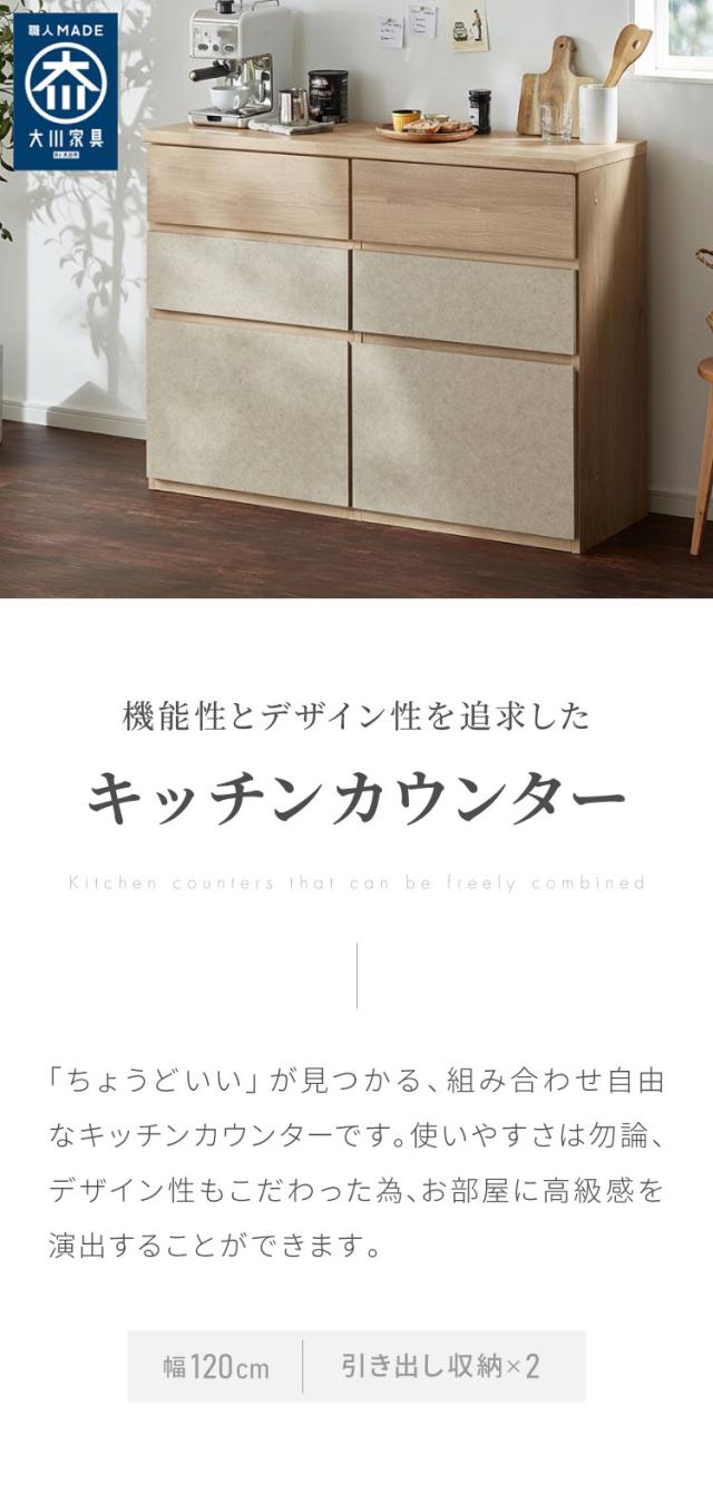 キッチンカウンター 幅120 完成品 日本製 引き出し ナチュラル 天板 キッチンラック キャビネット サイドボード モダン セラミック調 国産 大川家具(代引不可)【送料無料】