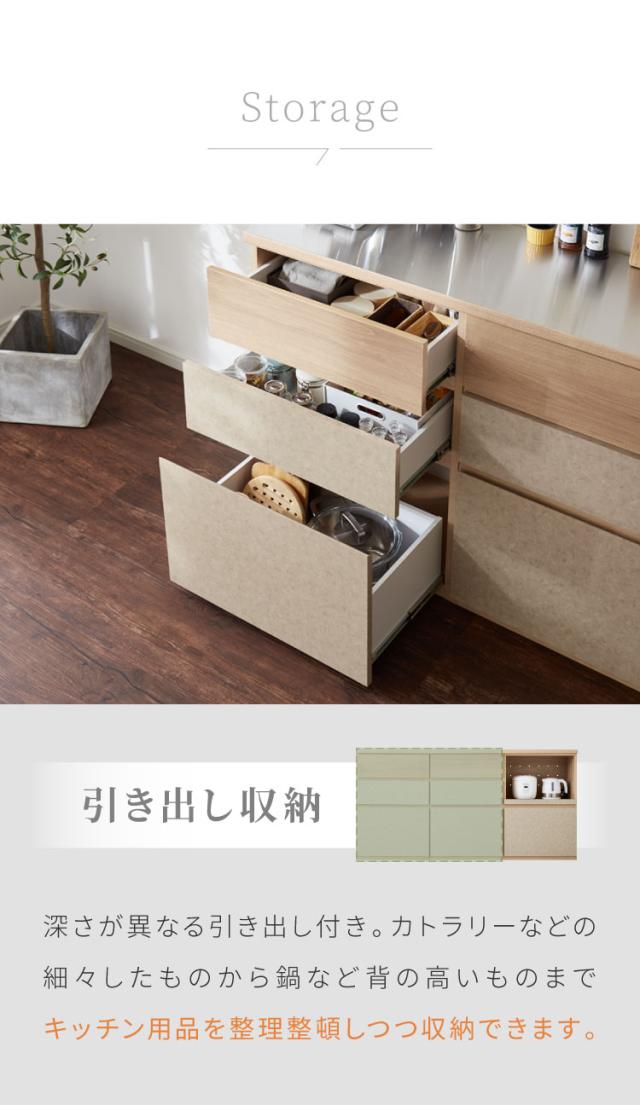 組み合わせを自由に選べるキッチンカウンター収納です。