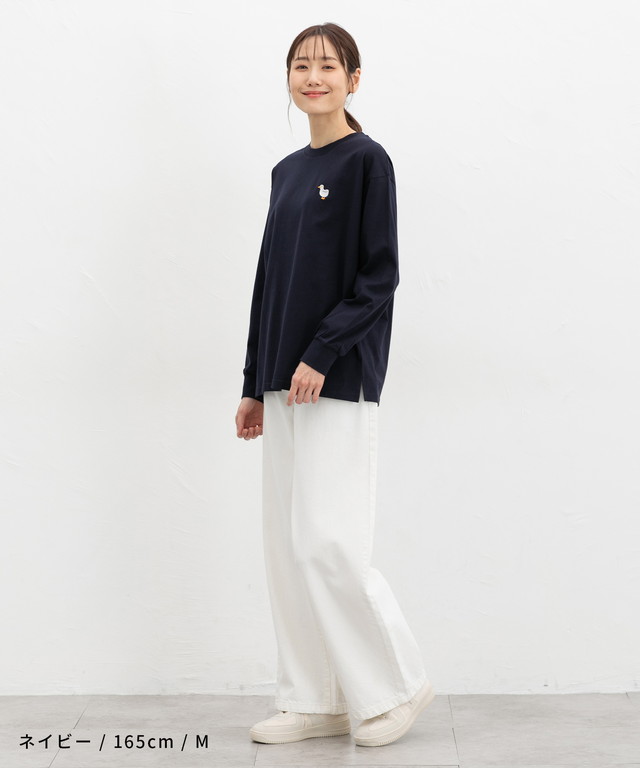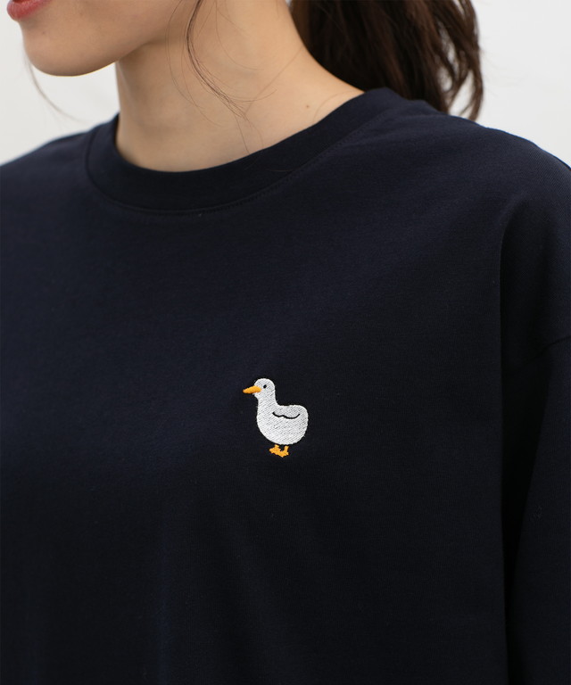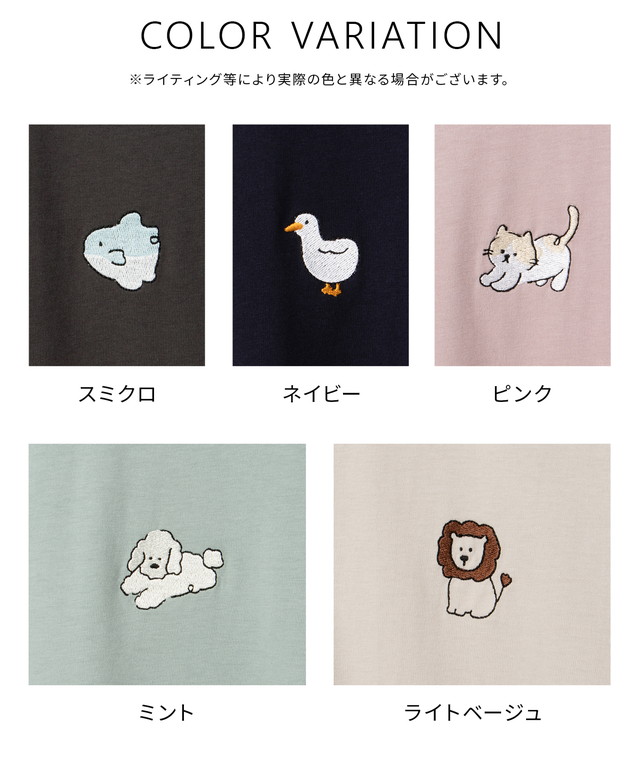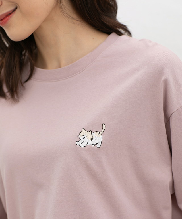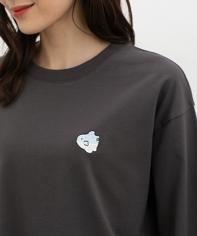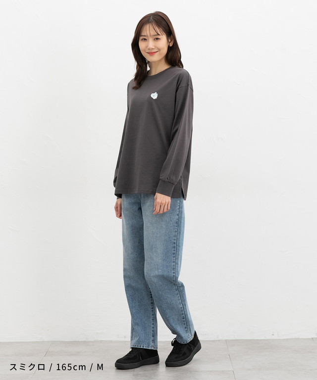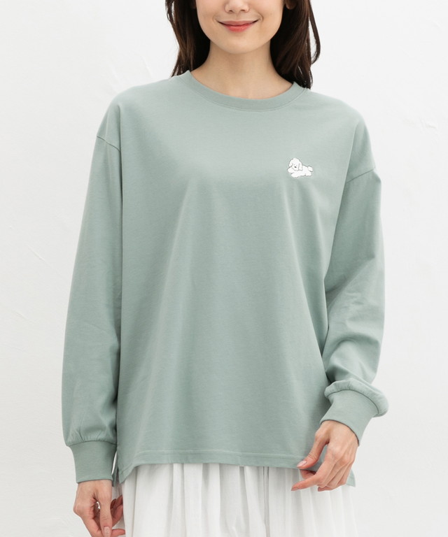 胸元のゆるかわモチーフ刺繍と抜け感のあるサイドスリットがお洒落なデザイン。