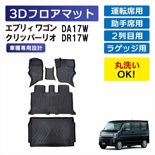 エブリィワゴン クリッパーリオ 専用 3Dフロアマット 車種専用 運転席 助手席 後部座席 1列目 2列目 ラゲッジ セット 立体 マット 車種専用設計 ズレ防止 泥 砂 水 防汚 汚れ防止 防水 水洗いOK カーマット ラバーマット DA17W DR17W 専用マット スズキ 日産 SUZUKI NISSAN