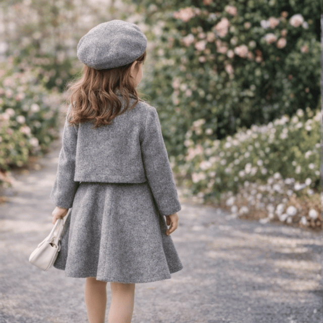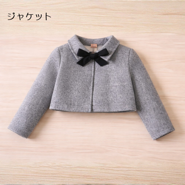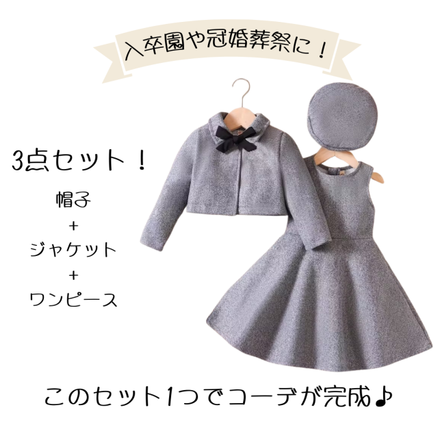 フォーマルスーツ 3点セット 女の子 ジャケット ワンピース 帽子 スーツ 子供スーツ ベビースーツ キッズ 入学式 入園式 卒業式 卒園式 リボン 七五三 冠婚葬祭 発表会 結婚式 おしゃれ グレー ベレー帽 スカート 春 90 100 110 120