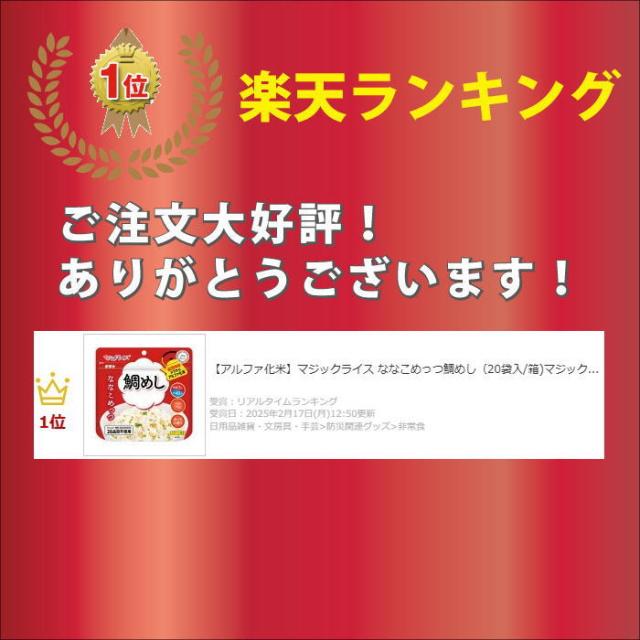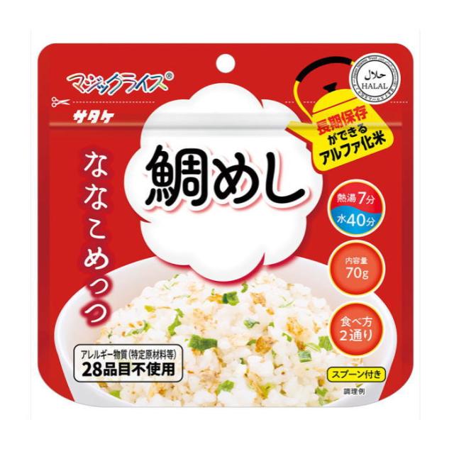 【アルファ化米】マジックライス ななこめっつ鯛めし(50袋入/箱)マジックライス サタケ アルファ化米 アレルギー対策品 非常食保存食 災害食 備蓄 防災 アウトドア