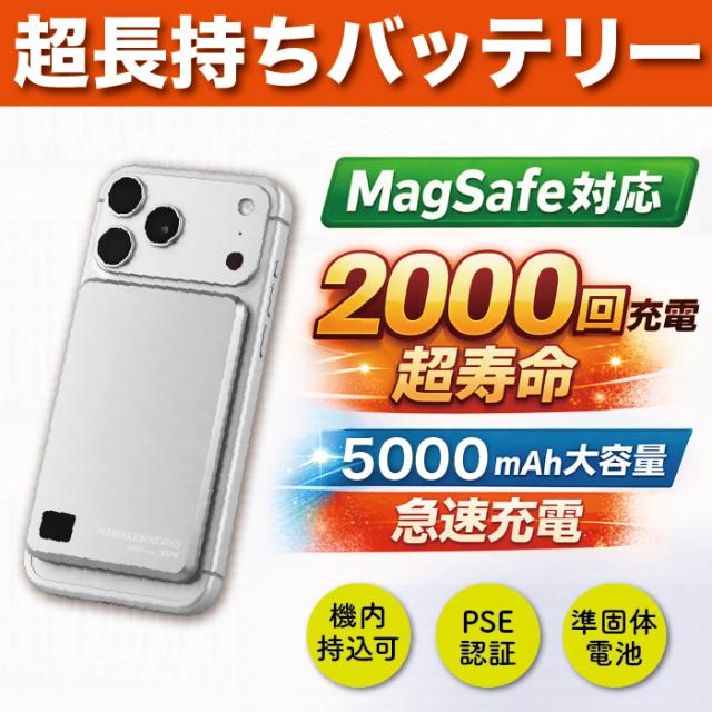 モバイルバッテリー 5000mAh 2000回充放電 長寿命 Magsafe 安全設計 準固体電池 PSE認証 マグセーフ ホワイト HW-SSPB050M1WHN ハマケンワークス JOVY SSPB HAMAKEN WORKS 送料無料