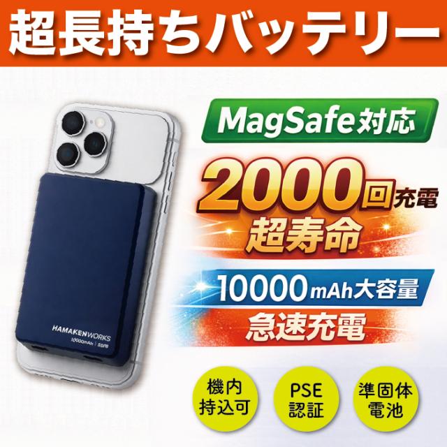 モバイルバッテリー 10000mAh 2000回充放電 長寿命 Magsafe 安全設計 準固体電池 PSE認証 マグセーフ ブラック HW-SSPB100M1BKN ハマケンワークス JOVY SSPB HAMAKEN WORKS 送料無料
