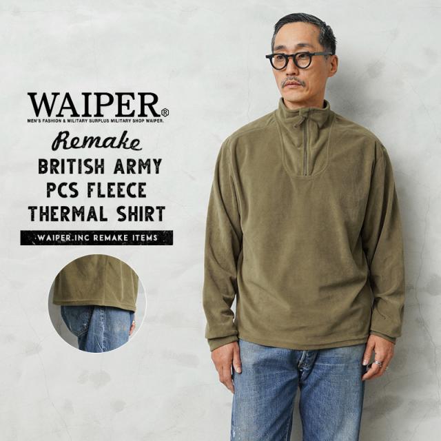 WAIPER.inc 実物 イギリス軍 リメイク PCS フリース サーマルシャツ LIGHT OLIVE スクエアテール【Cx】【T】
