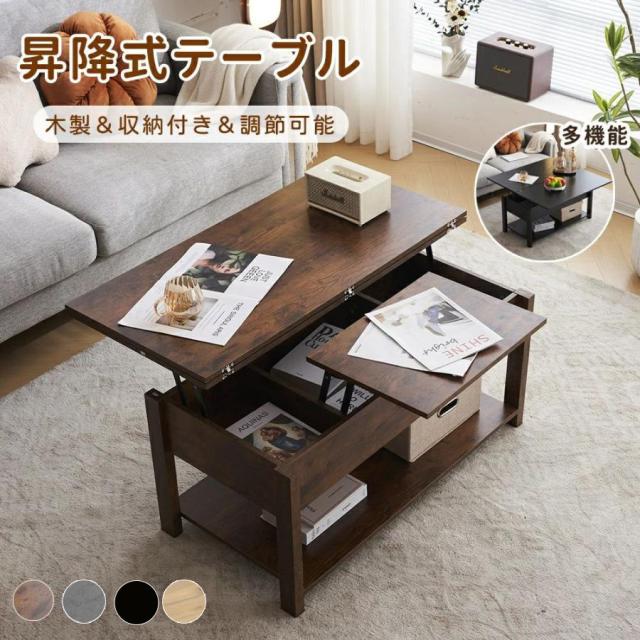 「クーポン配布中」多機能 昇降式テーブル ローテーブル センターテーブル リビングテーブル ソファテーブル 昇降式 収納テーブル 幅100cm 折りたたみ 天板昇降 収納付き 天板2倍展開可能 大容量 簡単開閉 天板昇降 家庭用テーブル 新生活応援