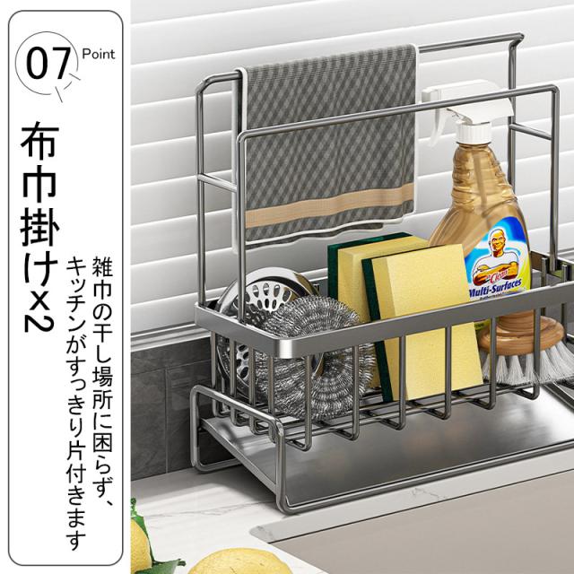 スポンジホルダー スポンジ置き キッチン ステンレス シンク 水切り スリム ふきん掛け スタンド ラック おしゃれ シンプル たわし置き 洗剤置き