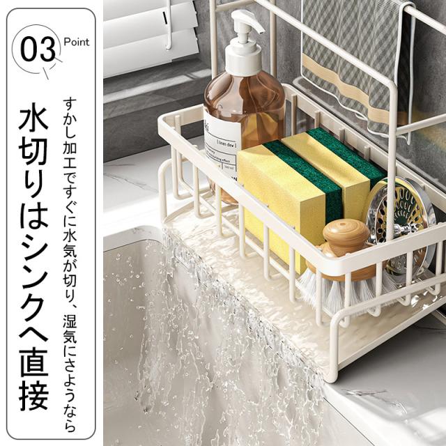 スポンジだけでなく、洗剤ボトルや布巾もかけられます♪