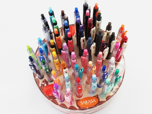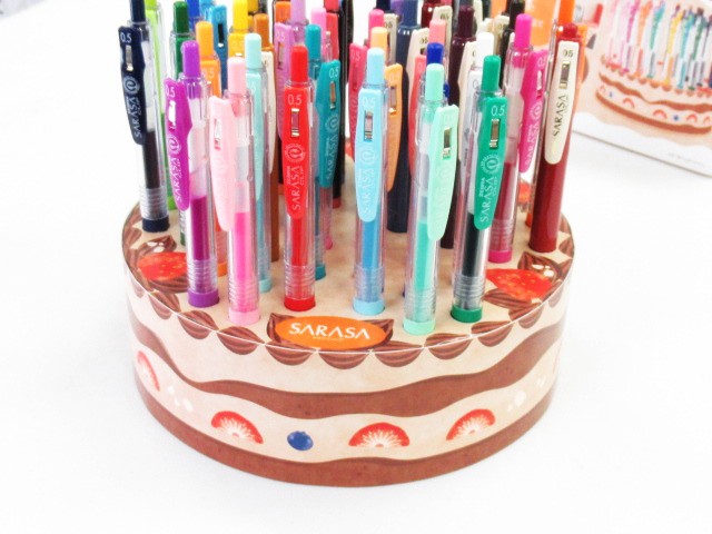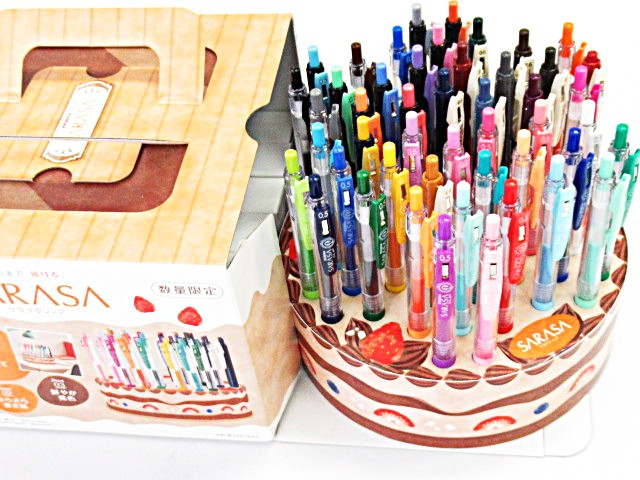 チョコケーキに見立てたかわいいペン立にジェルインクボールペン・サラサが48色