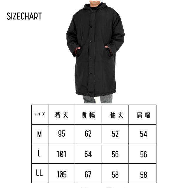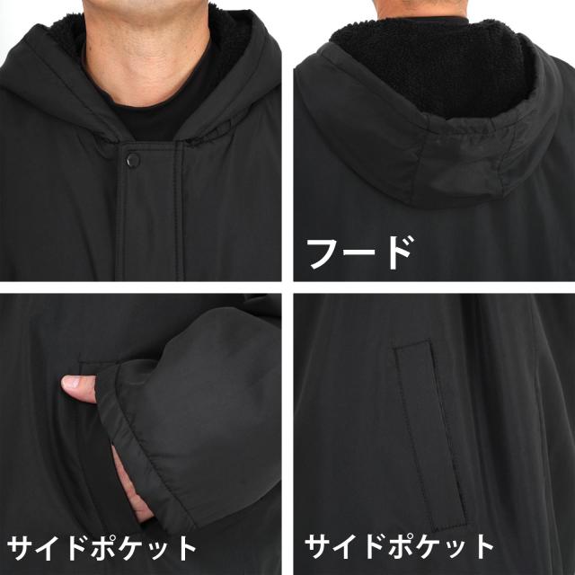 ベンチコート メンズ ロング丈 裏ボア 防寒 アウター アウトドア 作業着 スポーツ観戦 ユニフォーム 制服 保温 ファスナー フード 無地 まとめ買い【6023】