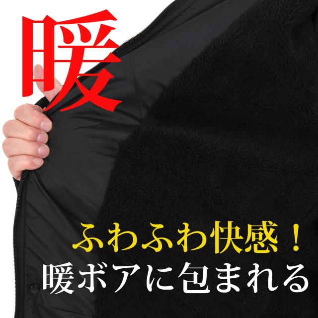 裏ボアで保温性抜群 冬の屋外作業 スポーツ スポーツ観戦 コーチ ブラック M L LL フード ファスナー ポケット