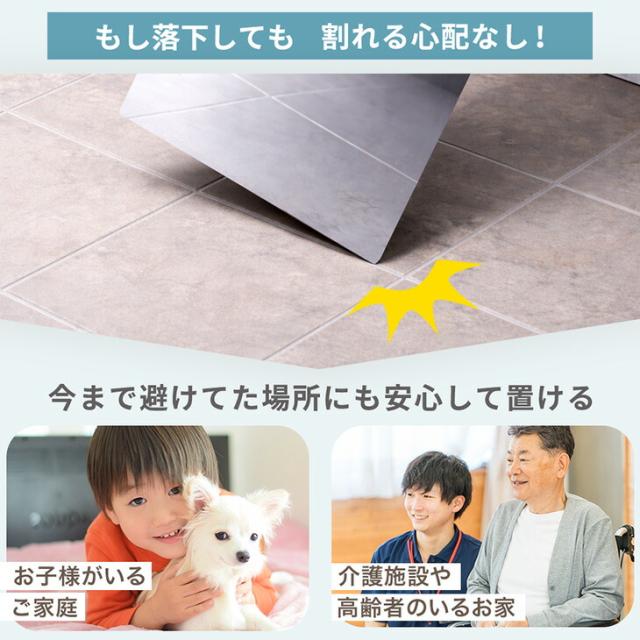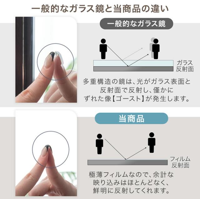 ミラー面は薄いフィルムのため、傷やゆがみ・破損の原因になります。