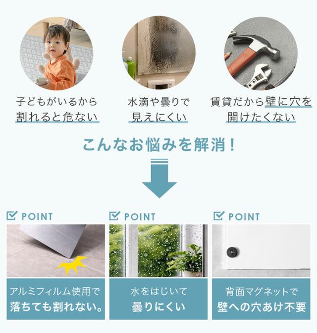 割れない 浴室鏡 35×40 くもり止め マグネット ミラー フレームレス 防水 割れない鏡 割れないミラー フィルムミラー マグネットミラー 曇り止め 鏡 洗面鏡 バスミラー 賃貸 バスルーム お風呂 洗面所