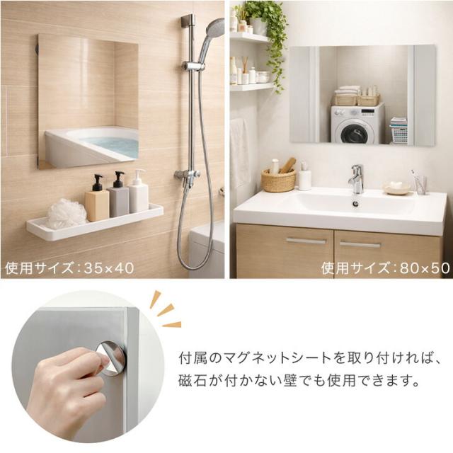【本日P5%還元】 【新発売プライス!2/10迄】 割れない 浴室鏡 50×80 くもり止め マグネット ミラー フレームレス 防水 割れない鏡 割れないミラー フィルムミラー マグネットミラー 曇り止め 鏡 洗面鏡 バスミラー 賃貸 バスルーム お風呂 洗面所