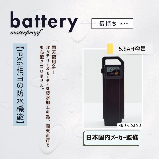 ・バッテリー:5.8Ah リチウムイオンバッテリー