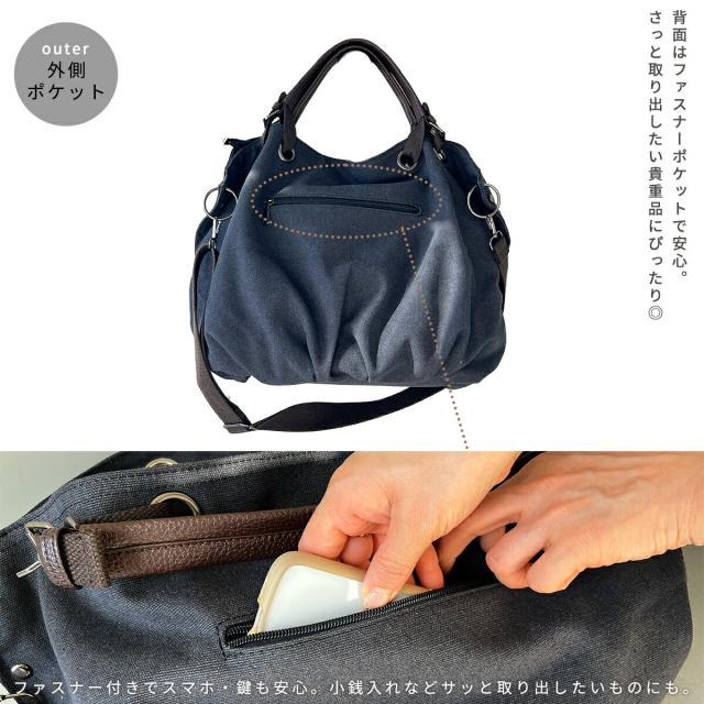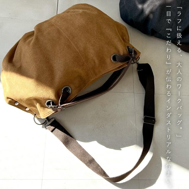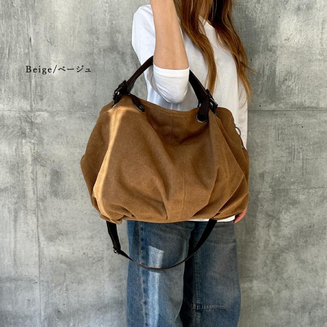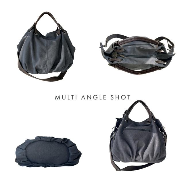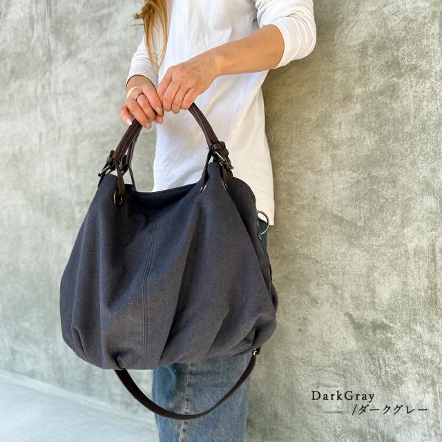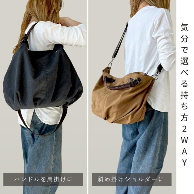 シーンに合わせ斜めがけ(斜め掛け)や肩掛けのショルダーバッグ、ハンドル持ちのショルダートートバッグ(ショルダートート)としてラフに使える2way仕様。持ち手の革が高級感をプラスします。