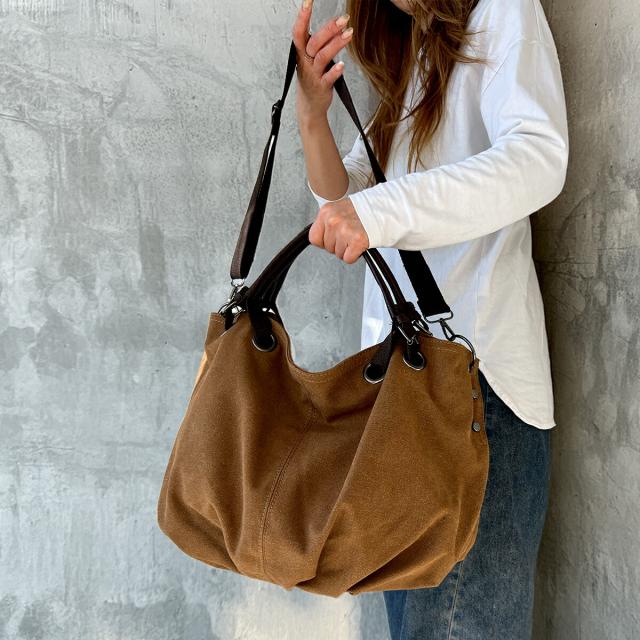 ショルダーバッグ レディース メンズ 大容量 帆布 バッグ 斜めがけ 肩掛け トートバッグ 仕切りバッグ 2way キャンバス ファスナー 大きめ 多収納 ポケット多い 厚手 丈夫 旅行 ショルダートートバッグ バルーンバッグ ポケット多 B5 チャック付きショルダーバッグ