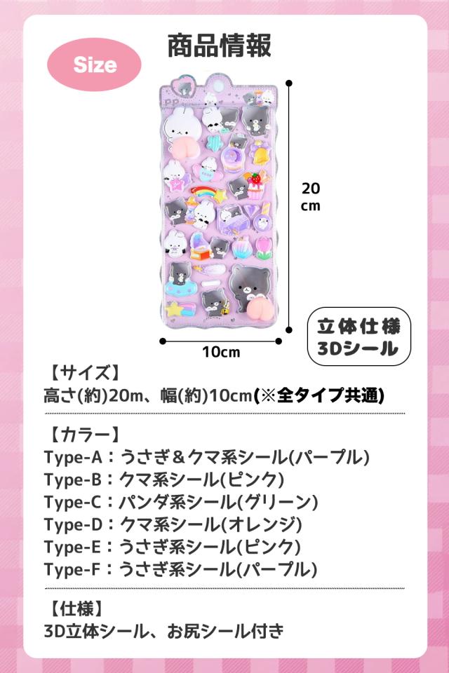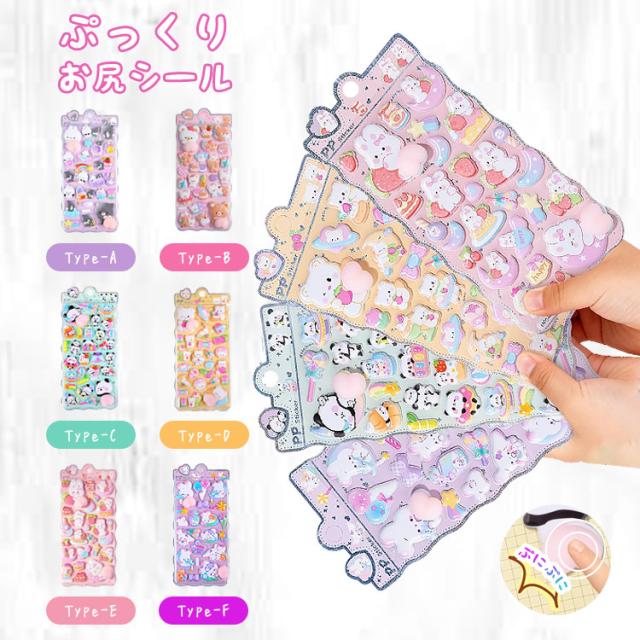 ぷっくりシール シール ぷっくり シール帳 マシュマロシール ぷにぷに おはじきシール おしりシール キャラクター 女の子 かわいい キャンディシール アニマル 動物 お腹 立体シール 犬 猫 うさぎ 熊 ひよこ 3Dシール