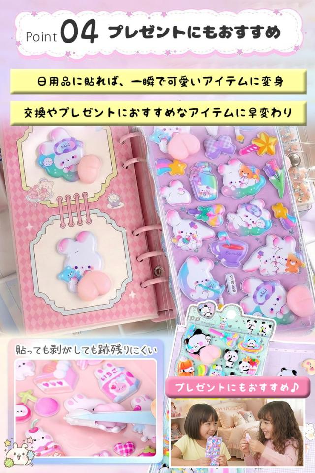 アニマル系や食べ物系まで揃ったぷっくりシールです