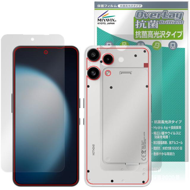 【予約商品:1月15日頃出荷開始予定】Nothing Phone (3a) Lite 表面 背面 保護フィルム OverLay 抗菌 Brilliant for ナッシング フォン Hydro Ag+ 抗菌 抗ウイルス 高光沢