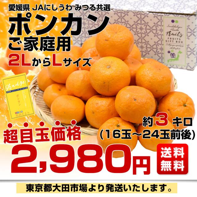 愛媛県産 JAにしうわ みつる共選 ポンカン ご家庭用 2LからLサイズ 約3キロ(16玉から24玉前後) 送料無料 にしうわ ぽんかん 柑橘 訳あり【発送時期:カート内に記載しております】