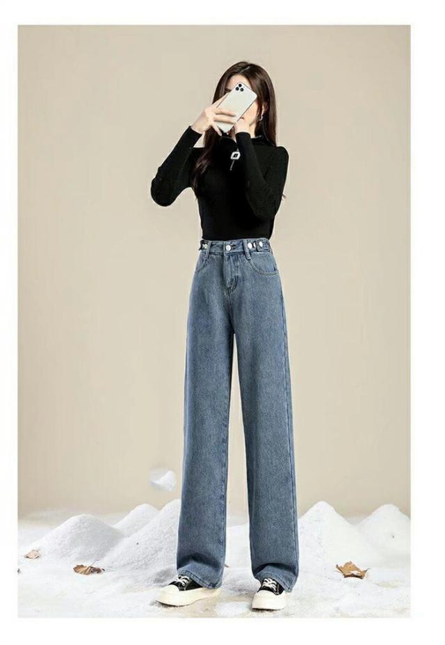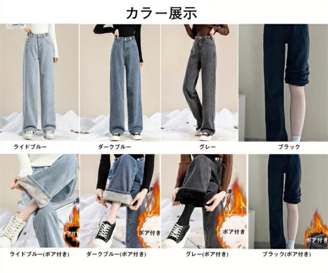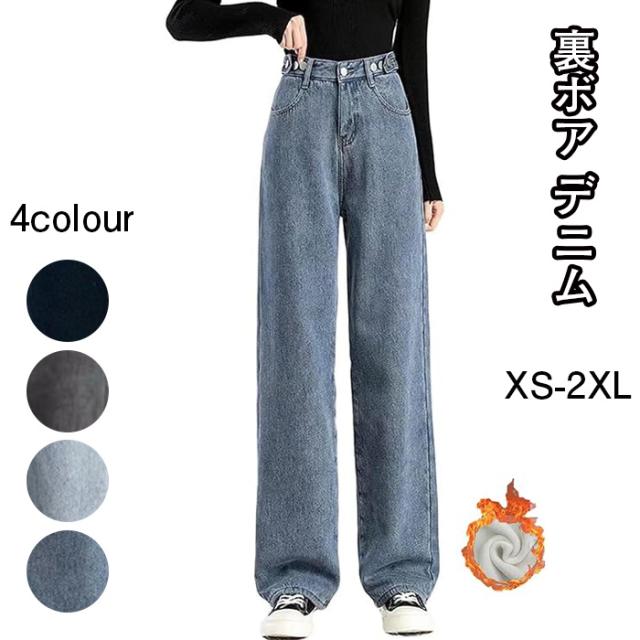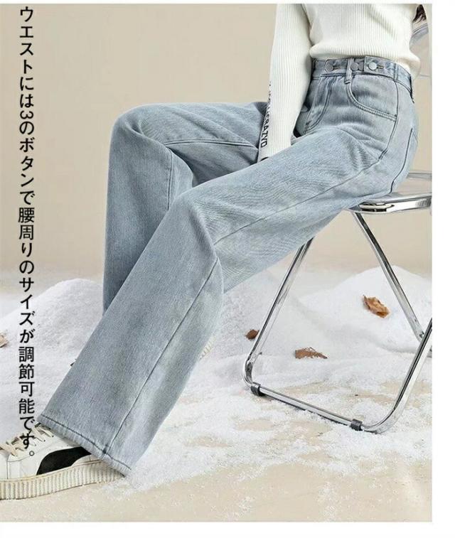 デニム ワイドパンツ 裏ボア 裏起毛 レディース ロング パンツ ウエスト調整可能 ハイウエスト パンツ 美脚 シンプル 体型カバー ボトムス 長ズボン 厚手 美脚 秋冬 防寒 XS-2XL-84