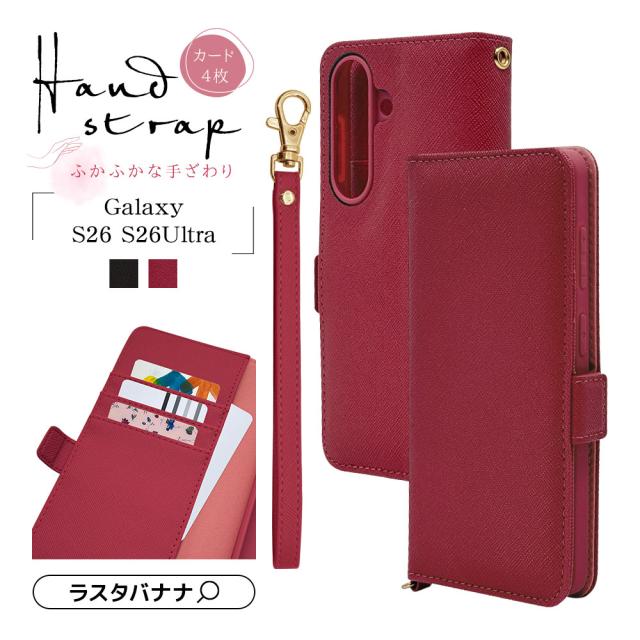 【ポスト投函不可】Galaxy S26 S26 Ultra ケース カバー 手帳型 カード収納 スタンド機能 ハンドストラップ付き シンプル サフィアーノ調 ギャラクシー スマホケース ラスタバナナ 9299GS26BHSBK 9300GS26BHSMA 9335GS26UBHSBK 9336GS26UBHSMA