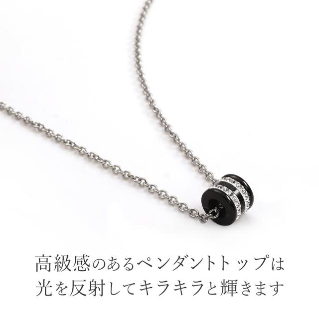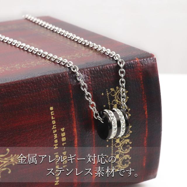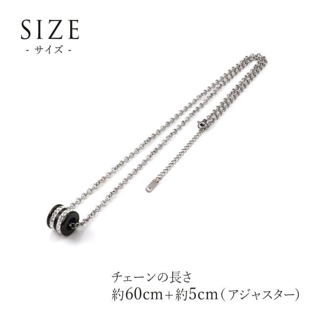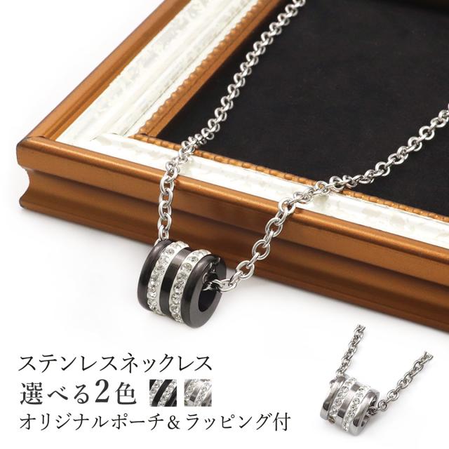 ネックレス メンズ 長めのネックレス アレルギー対応 ステンレス ネックレス チェーン 60cm ロング リング ペンダント 金アレ お洒落 黒色 銀色 シンプル ブラック シルバー カラー ラインストーン 友達 友人 男性 彼氏 誕生日 プレゼント 父の日 ギフト ホワイトデー お返し