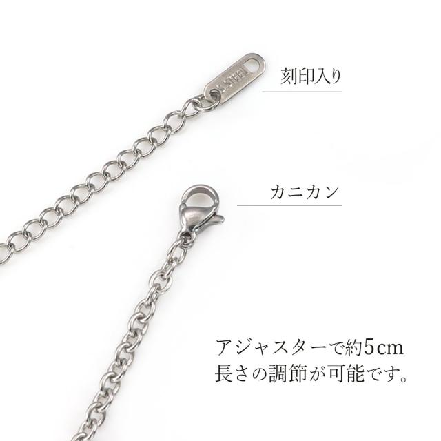 チェーンは約60cmと長めサイズで、さらにアジャスターで約5cmの調整が可能です。