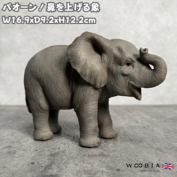 置物 動物 鼻を上げるゾウ 高さ12cm 象 縁起物 風水 woobia おしゃれ 大きい 玄関インテリア 庭 かわいいオブジェ リアル