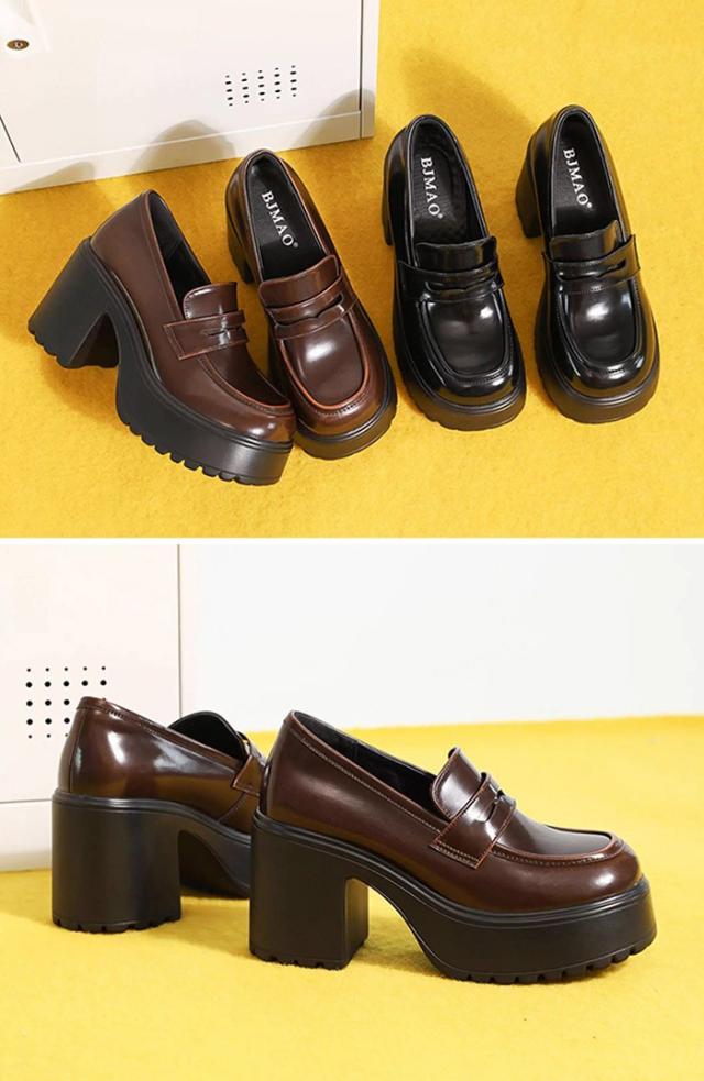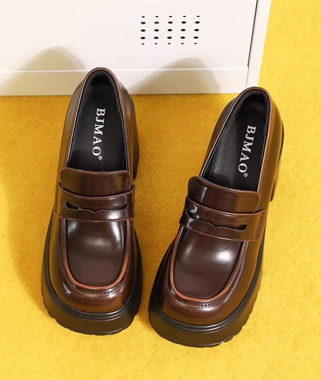 厚底ローファー レディース チャンキーヒール 太ヒール 靴 美脚 厚底シューズ 歩きやすい 痛くない 通勤 黒 茶 おしゃれ 春 秋 冬 nt001n1n1x7