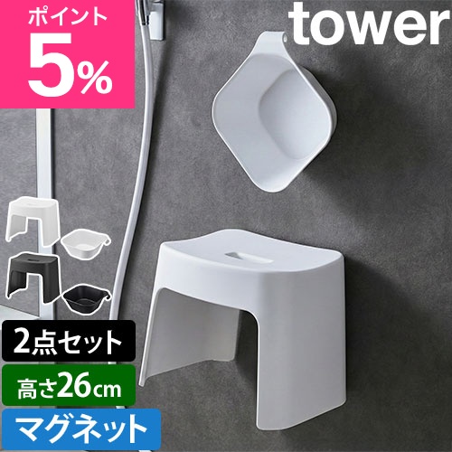tower (タワー) 洗いやすいマグネット風呂イス SH32 + マグネット&引っ掛け湯おけ セット