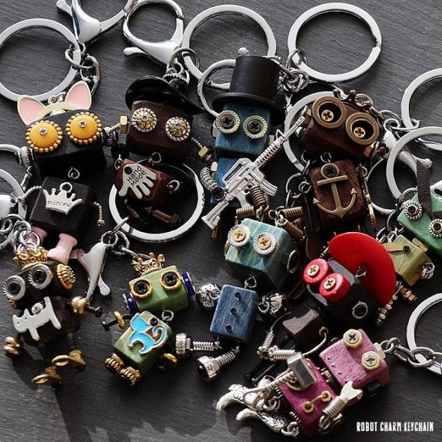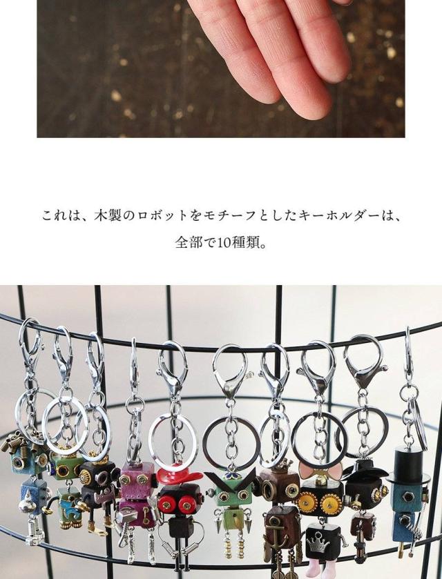 ・これは、木製のロボットをモチーフとしたキーホルダーは、全部で10種類。