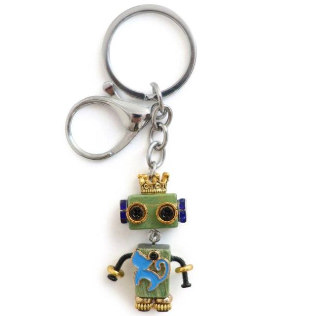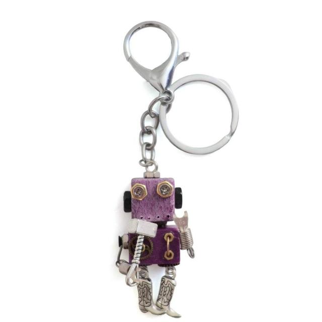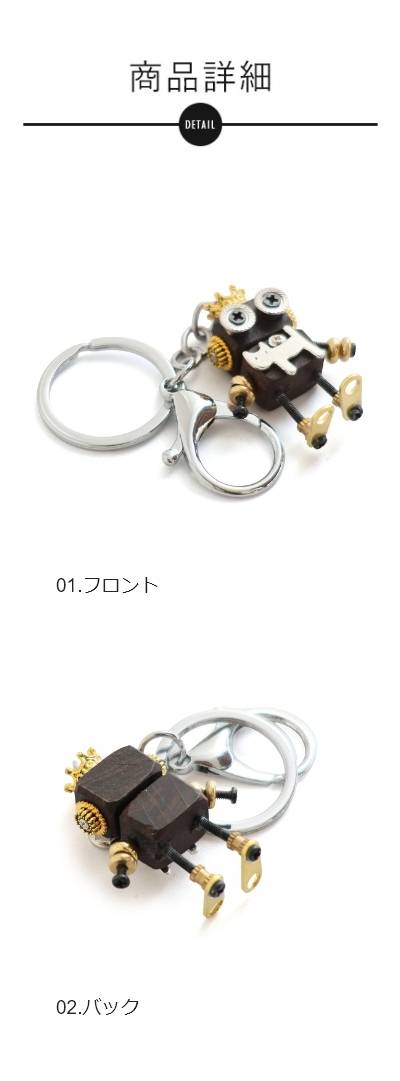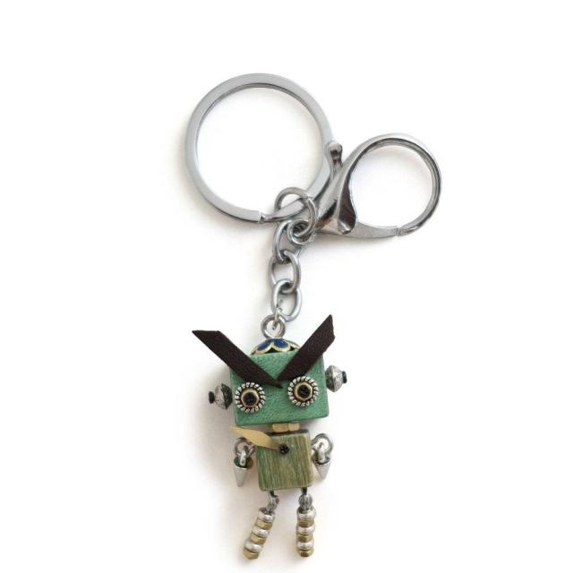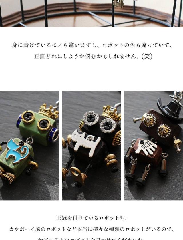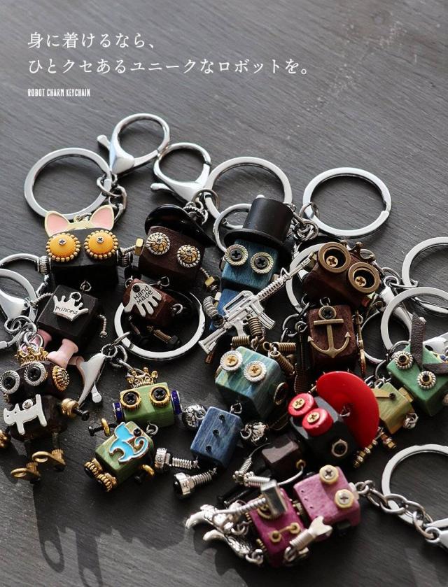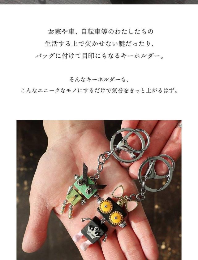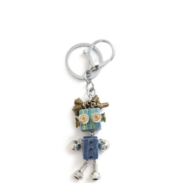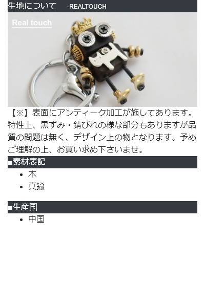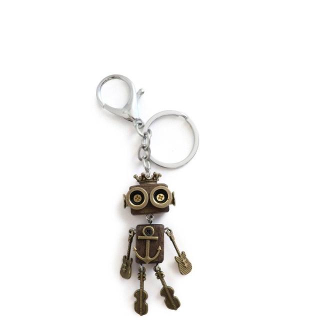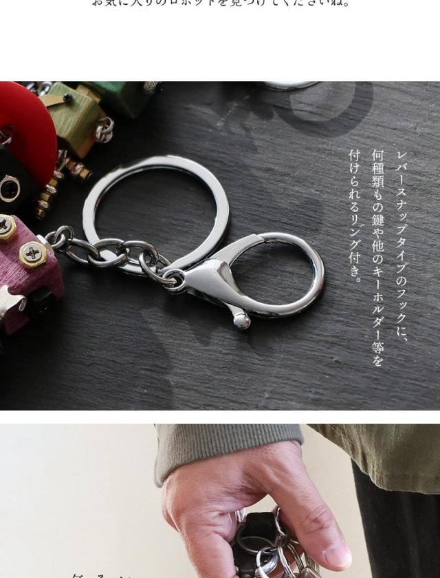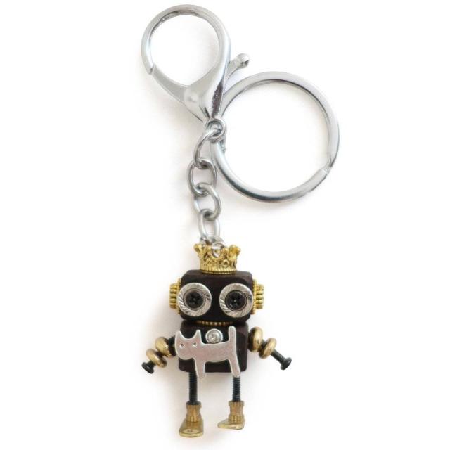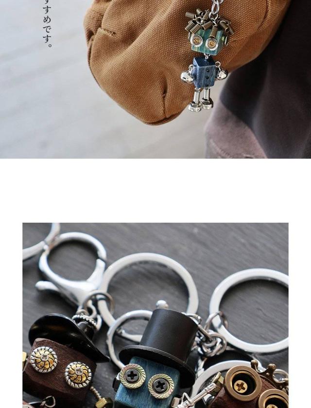 キーホルダー キーリング メンズ レディース ロボット 木製 ストラップ 真鍮 レバースナップ カジュアル ヴィンテージ レトロ 贈り物 プレゼント パティ