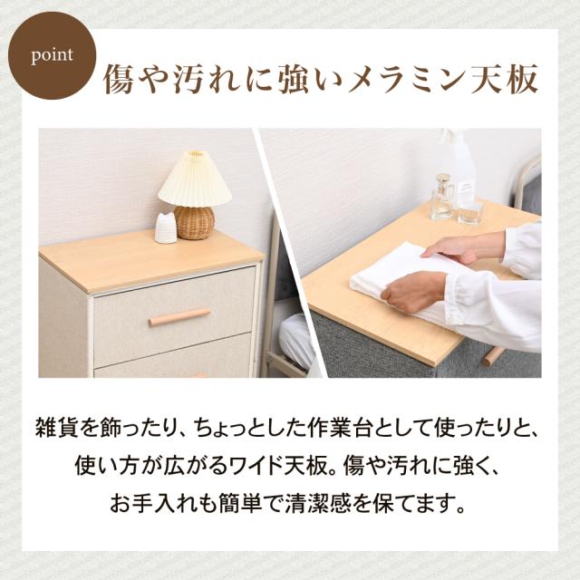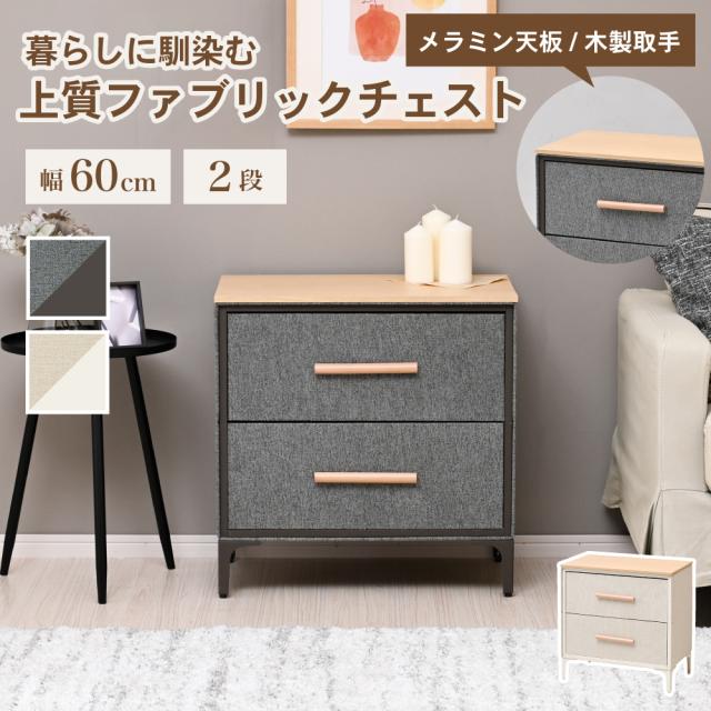 チェスト ファブリック 2段 スリム 引き出し 布製 ファブリックチェスト 天板付き 衣類収納 幅59.5 大容量 軽量 脚付き ルンバ対応 クローゼット リビング 一人暮らし 木目
